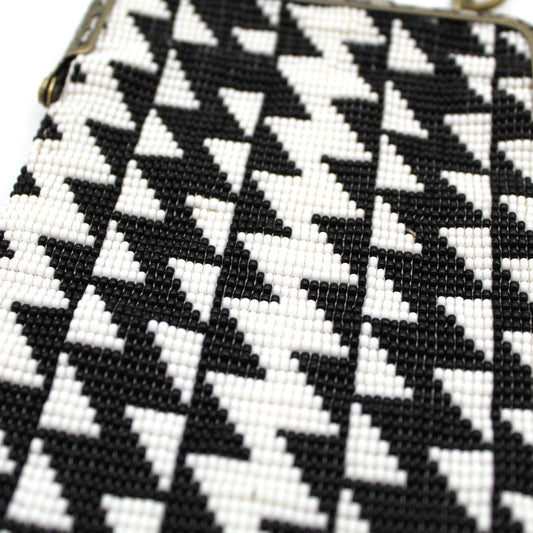 Glass Bead Cell Phone Crossbody Bag - LIGHTNING BOLT BLACK & WHITE