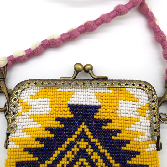 Glass Bead Cell Phone Crossbody Bag - GEO MUSTARD B&W