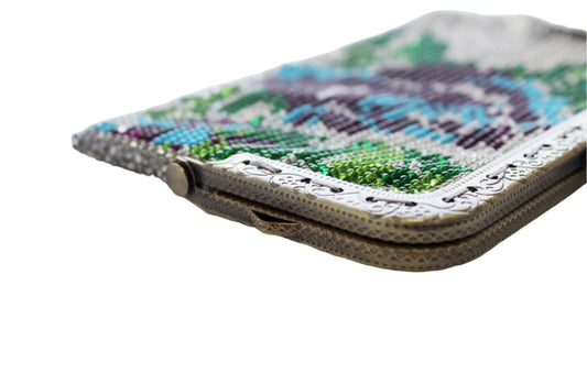 Glass Bead Flower Purse Metal Frame - SILVER