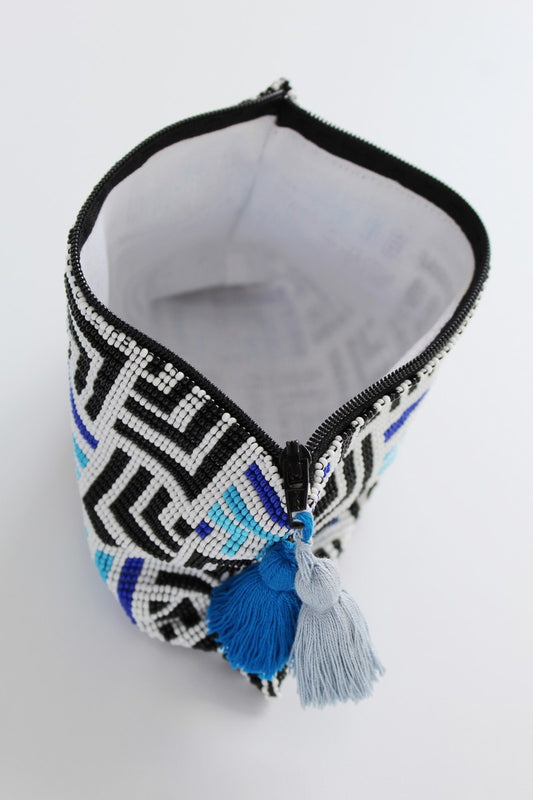 Labyrinth Glass Bead Clutch Blue