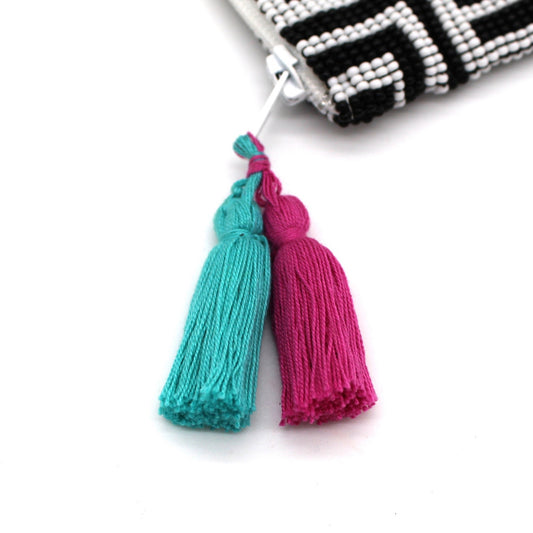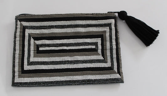 Labyrinth Glass Bead Clutch Black and White