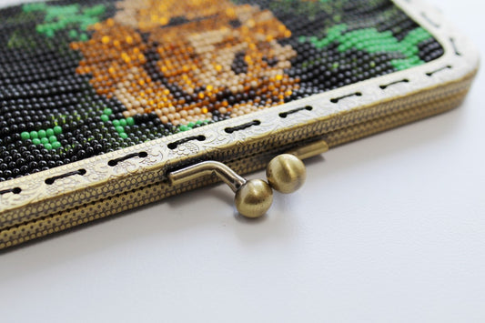 Stripe Flower Glass Bead Clutch