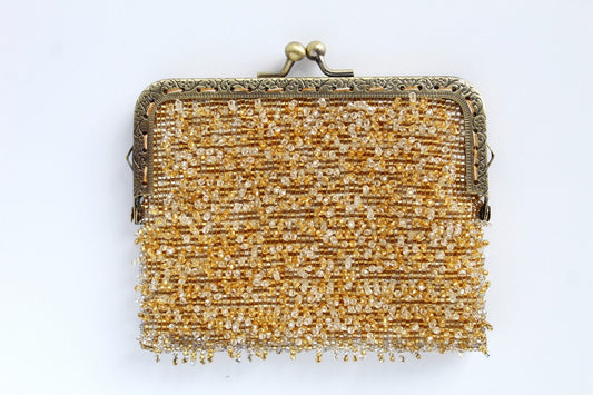Glass Bead Flower Purse Metal Frame - GOLD