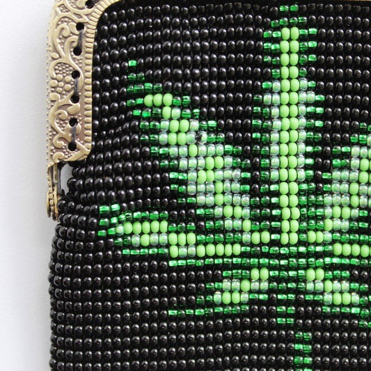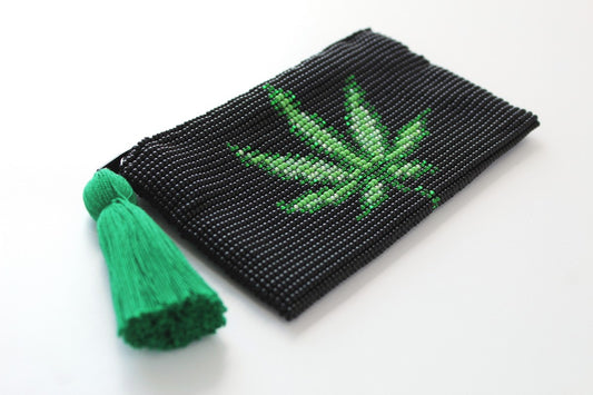 Glass Bead Coin Purse Cannabis Leaf image - GREEN ON BLACK
