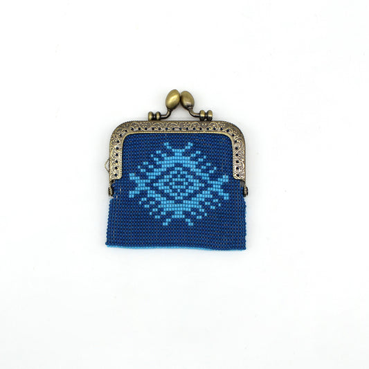 Glass Bead Coin Purse Metal Frame - BLUE EYE