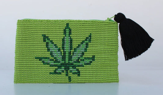 Glass Bead Coin Purse, Cannabis Leaf image - GREEN ON GREEN
