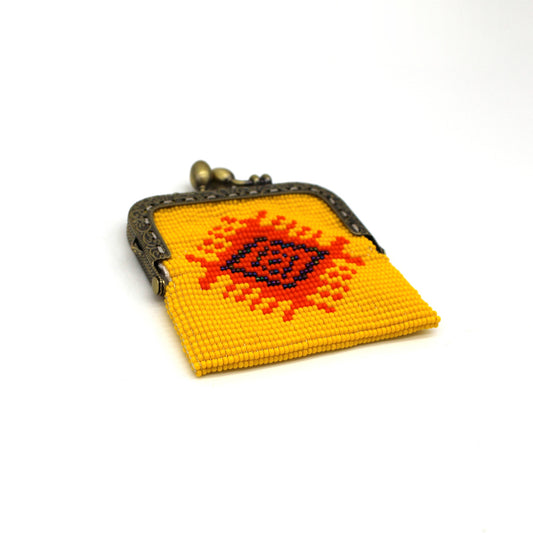 Glass Bead Coin Purse Metal Frame - YELLOW EYE