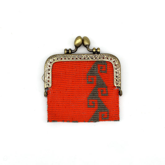 Glass Bead Coin Purse Metal Frame - STORM ORANGE