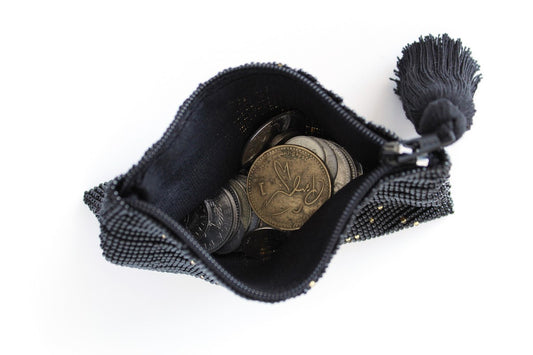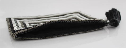 Rectangle Glass Bead Coin Purse Black & White