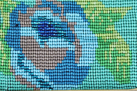 Glass Bead Flower Purse with Metal Frame - LIGHT BLUE