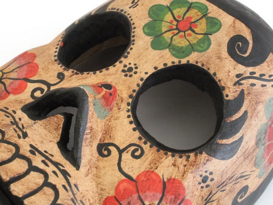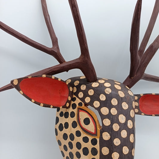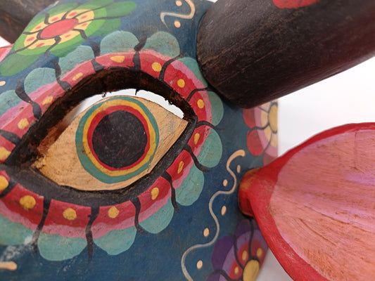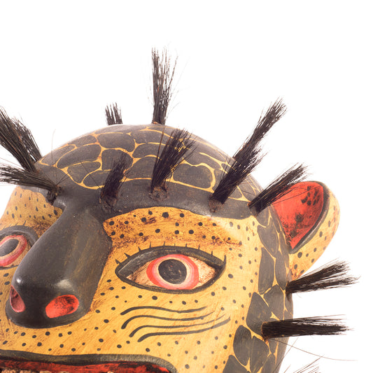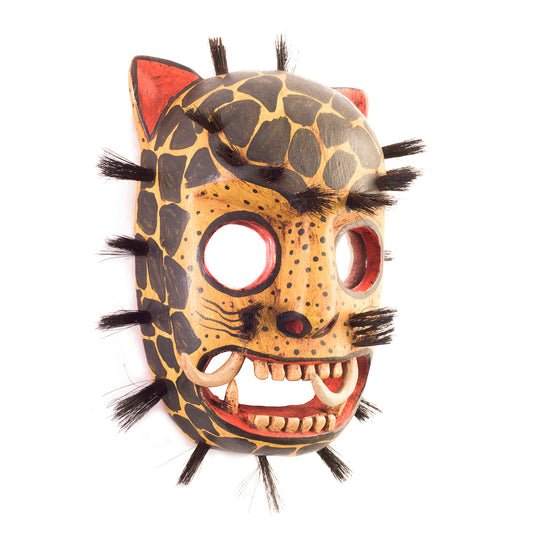 Handcarved Wooden Jaguar Mask with mirrored eyes